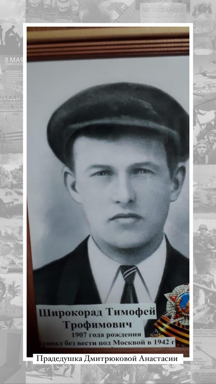 Широкорад Тимофей Трофимович, 1907г.р., призван с Казахской ССР, (Северный Казахстан) , пропал без вести под Москвой 1942г.жена Просковья.Больше ничего не известно.