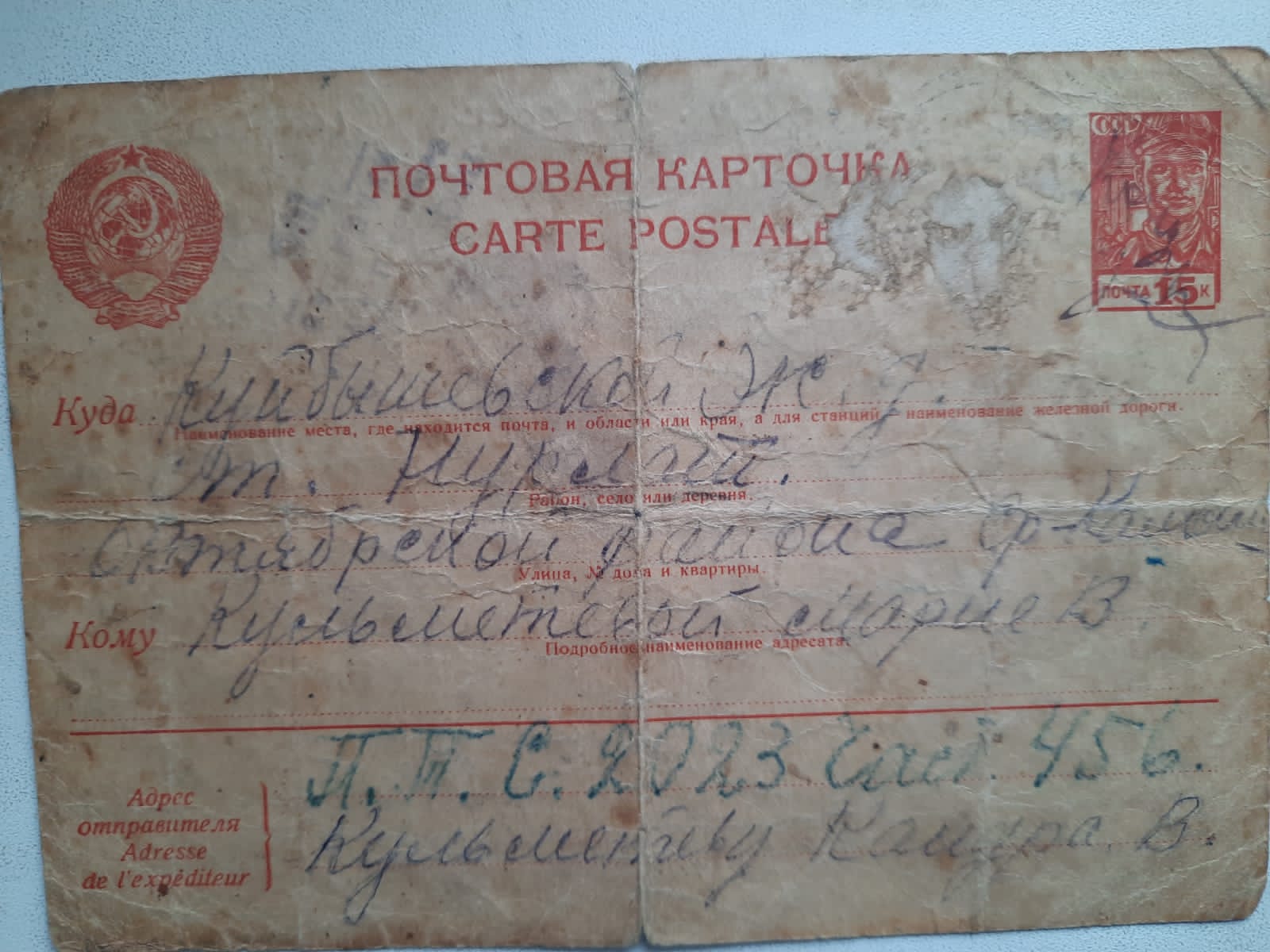 По Кульметьев Кондратий Васильевич удалось найти ещё один адрес:ППС 2032 часть 456 . А п/Я 2252 часть 13 может это. Письмо он последнее написал 13 января 1943 года