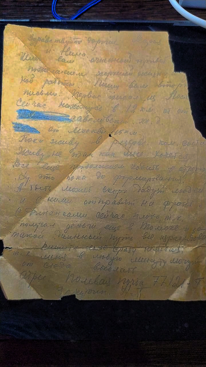 | Помогите найти информацию о моем деле. Закурин Александр Григорьевич, 1922гр, был призван в августе 1941 года в п.Лух. Нашел только информацию что служил в ВДВ в звании мл.лейтенант. Последнее письмо было получено в 1942 году. В письме указана полевая почта77121-Г. Данных по этой полевой почте не нашел. |