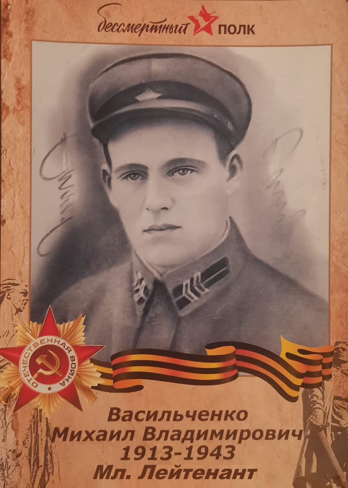 1913 г. р. Воронежская обл. Новохоперский р-н. слобода Красная. Призван 1941 Новохопёрский РВК. Пропал без вести 1943 г. Жена Васильченко Анна Васильевна