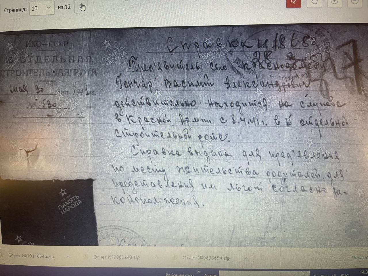 | ПОМОГИТЕ НАЙТИ ЗАХОРОНЕНИЕ ПРАПРАДЕДУШКИ!!!Гончар Василий Александрович Документ, уточняющий потери Дата рождения: __.__.1921 Место рождения: Молдавская ССР, Слободзейский р-н, с. Слободзе Дата призыва: __.__.1940 Слободзейский РВК, Молдавская ССР, Слободзейский р-н Дата призыва: __.__.1940 Воинское звание: рядовой Последнее место службы: 15 отд. строит. рота Дата выбытия: __.10.1944 Причина выбытия: пропал без вести Информация об архиве - Источник информации: ЦАМО Фонд ист. информации: 58 Опись ист. информации: 977523 Дело ист. информации: 116 Это все, что удалось найти! |