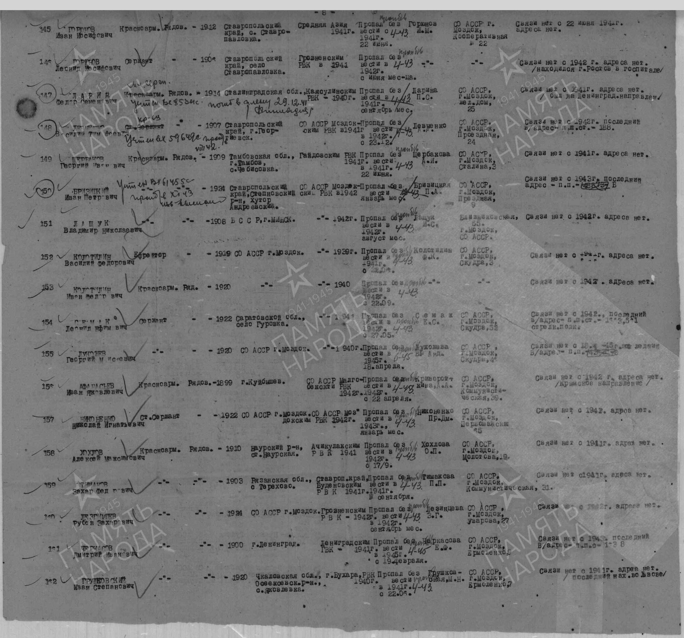 Левченко Василий Тимофеевич, 1907 г.р. Помогите найти родственника,где воевал и где погиб не могу найти. По сайту подвиг народа пропал без вести 23.12.1942г. Проживал в СО АССР г. Моздок, ул. Проездная 24. Призывался Моздокским РВК в 1941г.