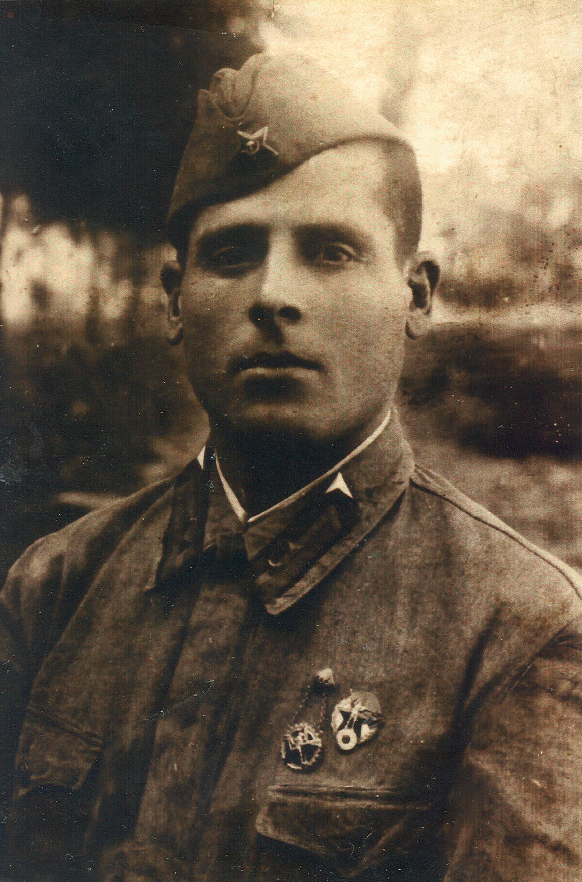Осенью 1941 года лечился в госпитале в г.Кисловодск. Фотография предположительно сделана там. По архивным данным рядовой, но на фото петлицы сержантские, возможно фотографировался не в своей гимнастерке. Письмо из госпиталя Кисловодска датировано (штемпель на письме) 131041, в нем он пишет, что ориентировочно будет находится там ещё до 25-го числа.