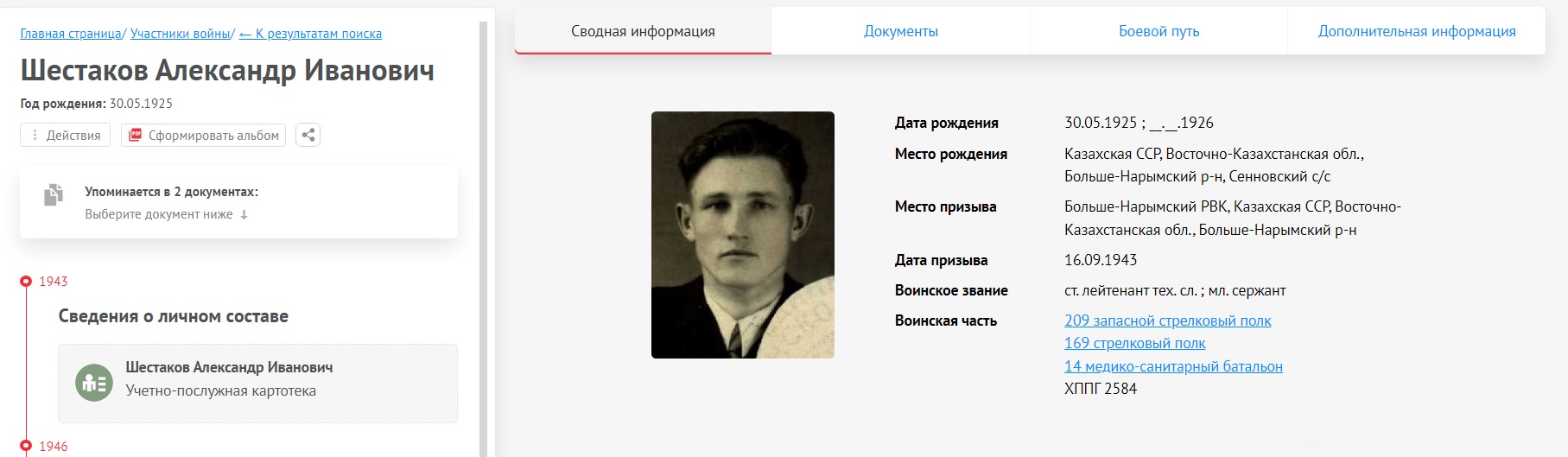 | Уважаемая Ольга, Спасибо Вам за такой быстрый ответ. Я то готов, но я далеко нахожусь, а поехать туда (с. Сенное, Южно-Казахстанская обл.) прямо сейчас не смогу. Я ищу его везде, используя интернет и поисковые сайты, нашел его сына (моего деда Шестакова Александра Ивановича, как говорили мне его братья (мои деды), что он пошел на фронт искать отца, но без результатов. Но со своим дедом Ш.А.И. я провел детство, видел его, мне было 5-6 лет и тогда не задумывался и не спрашивал про прадеда. Время от времени ищу информацию на сайтах, может поисковики нашли. |