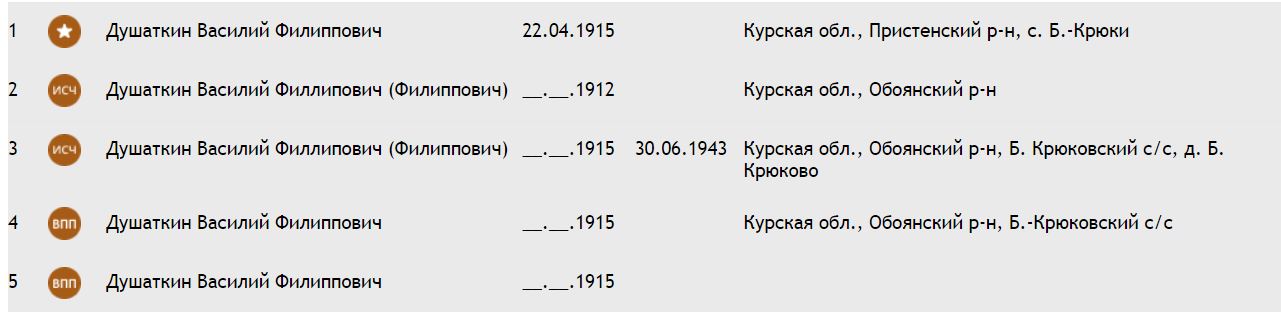 Помогите пожалуйста найти хоть какие-то известия о солдате Душаткин Василий Филиппович примерно 1905гр( со слов бабушки). Это бабушкин отец. Она его не видела,но есть документ подтверждающий брак( №120) с его женой Миронова Анна Николаевна, заключен брак 11.11.1936г. МОНЧЕГОРСКИМ С/С В 1937 году у него родилась дочь. |