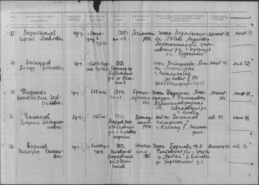Здесь дают рекомендации по установлению судьбы ПРОПАВШЕГО БЕЗ ВЕСТИ военнослужащего. Запросы другого характера, а также от анонимных авторов не рассматриваются и удаляются из системы. При появлении комментария автоматически приходит уведомление. Чтобы оставить запрос, требуется регистрация в ЛИЧНОМ КАБИНЕТЕ.
