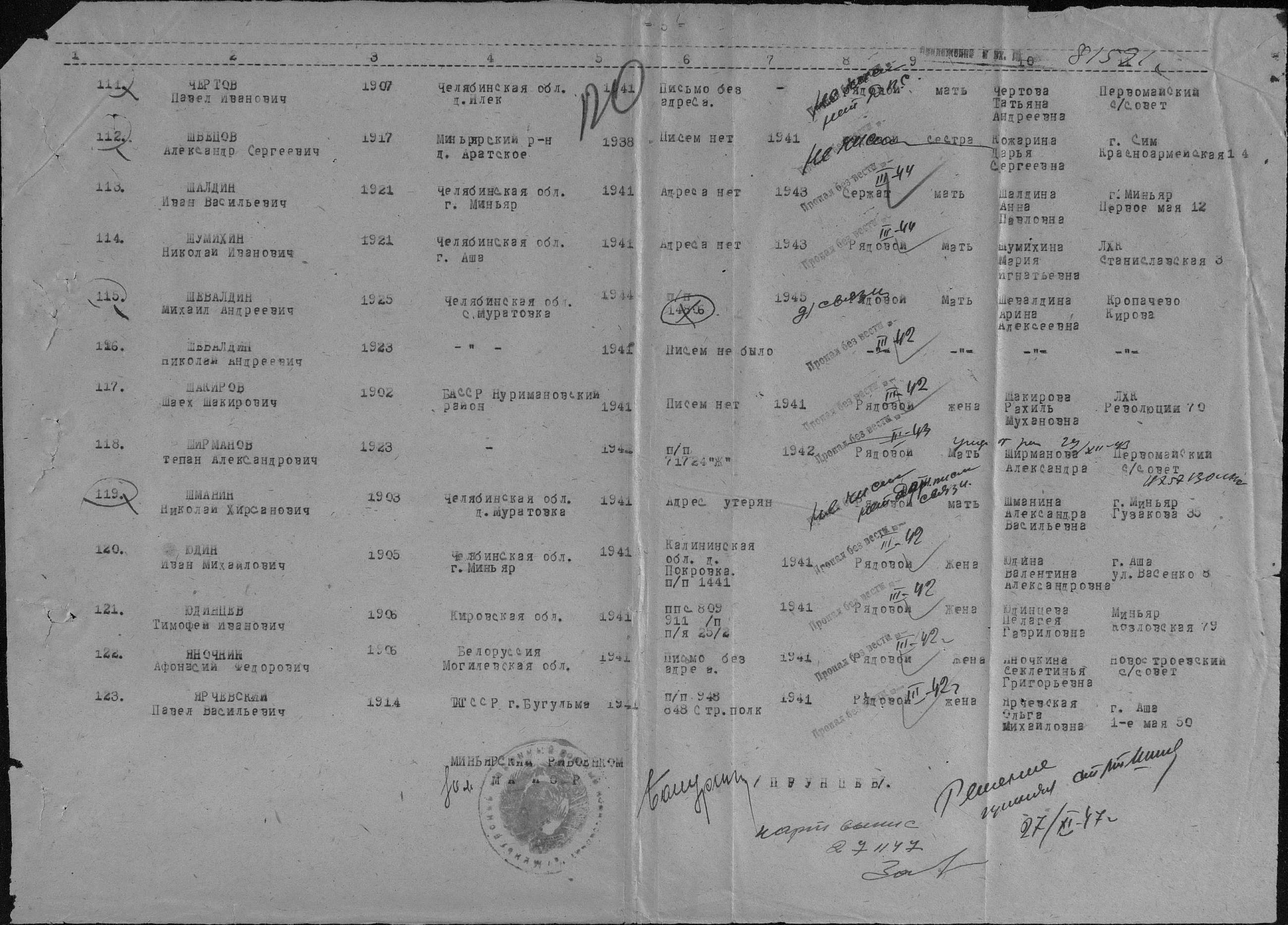 В ЗАПРОСЕ, КРОМЕ Ф.И.О., УКАЖИТЕ ДАТУ и МЕСТО РОЖДЕНИЯ, ДАТУ и МЕСТО ПРИЗЫВА, А ТАКЖЕ ИМЕНА МАТЕРИ ИЛИ ЖЕНЫ.