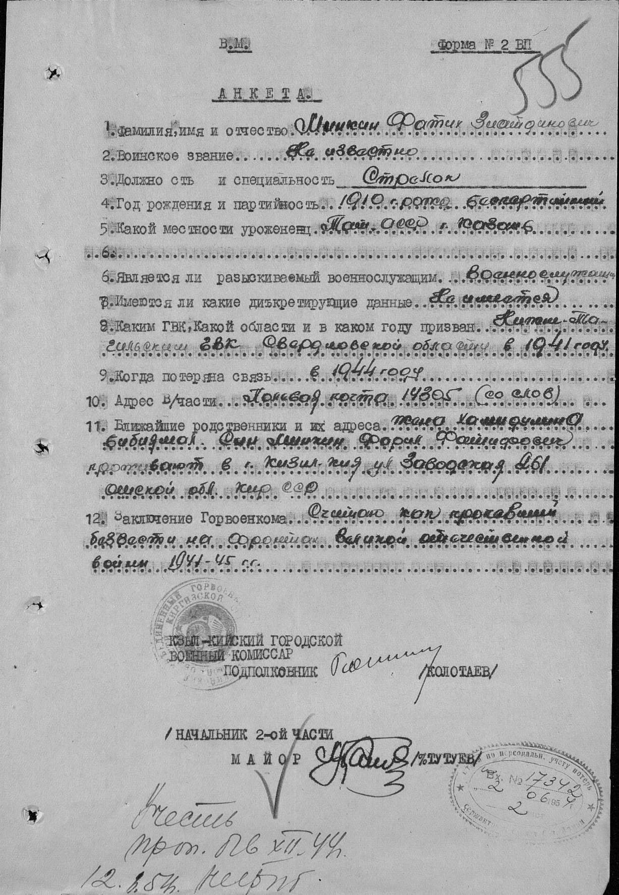 В ЗАПРОСЕ, КРОМЕ Ф.И.О., УКАЖИТЕ ДАТУ и МЕСТО РОЖДЕНИЯ, ДАТУ и МЕСТО ПРИЗЫВА, А ТАКЖЕ ИМЕНА МАТЕРИ ИЛИ ЖЕНЫ.