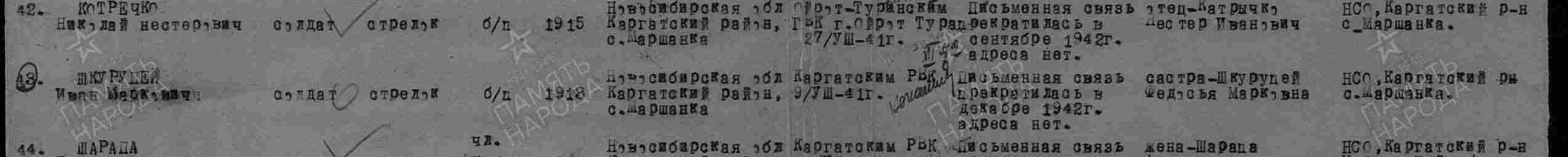 Скороход (Скороходов) Степан Родионович (Радионович) Дата рождения __.__.1904 Место призыва 22.08.1941 Кололесийский ГВК Воинское звание солдат/стрелок Место рождения Новосибирская обл., Каргатский р-н, с. Маршанка По другим данным: Место рождения Новосибирская обл... |