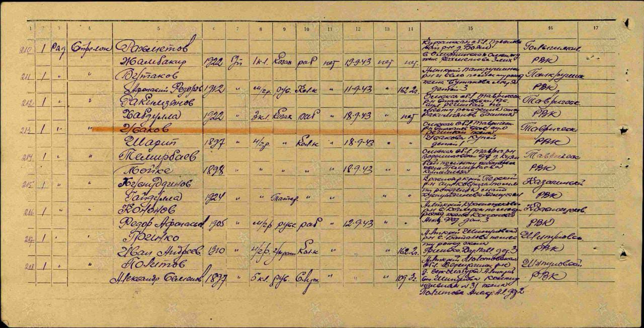 Фамилия, имя, отчество: Мотабаев Ергали Мотабаевич Год рождения: 1908 Место рождения: ВКО, Маркакольский р/н, с.Алексеевка Национальность: Казах Место работы: - к-з "Коминтерн" Когда и каким военкоматом призван: 1942 Зайс... |