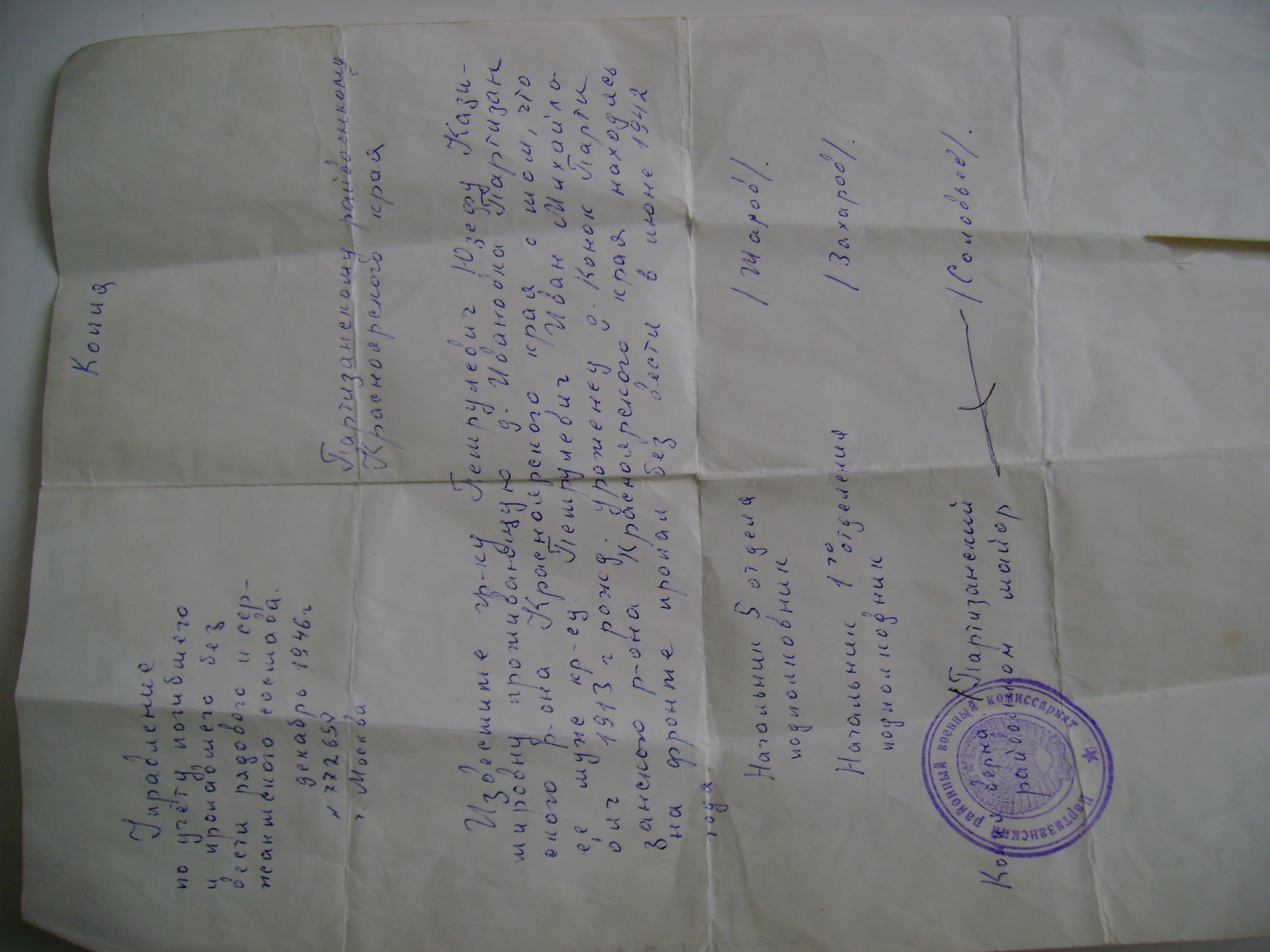 Здесь дают рекомендации по установлению судьбы ПРОПАВШЕГО БЕЗ ВЕСТИ военнослужащего. Запросы другого характера, а также от анонимных авторов не рассматриваются и удаляются из системы. При появлении комментария автоматически приходит уведомление. Чтобы оставить запрос, требуется регистрация в ЛИЧНОМ КАБИНЕТЕ.