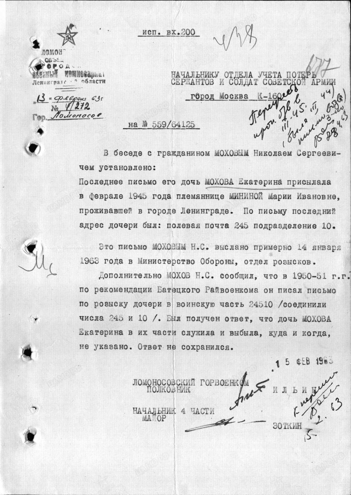 Здесь дают рекомендации по установлению судьбы ПРОПАВШЕГО БЕЗ ВЕСТИ военнослужащего. Запросы другого характера, а также от анонимных авторов не рассматриваются и удаляются из системы. При появлении комментария автоматически приходит уведомление. Чтобы оставить запрос, требуется регистрация в ЛИЧНОМ КАБИНЕТЕ.