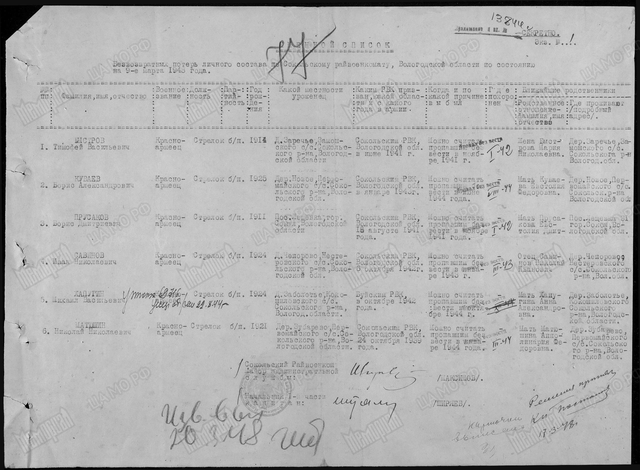 Здесь дают рекомендации по установлению судьбы ПРОПАВШЕГО БЕЗ ВЕСТИ военнослужащего. Запросы другого характера, а также от анонимных авторов не рассматриваются и удаляются из системы. При появлении комментария автоматически приходит уведомление. Чтобы оставить запрос, требуется регистрация в ЛИЧНОМ КАБИНЕТЕ.