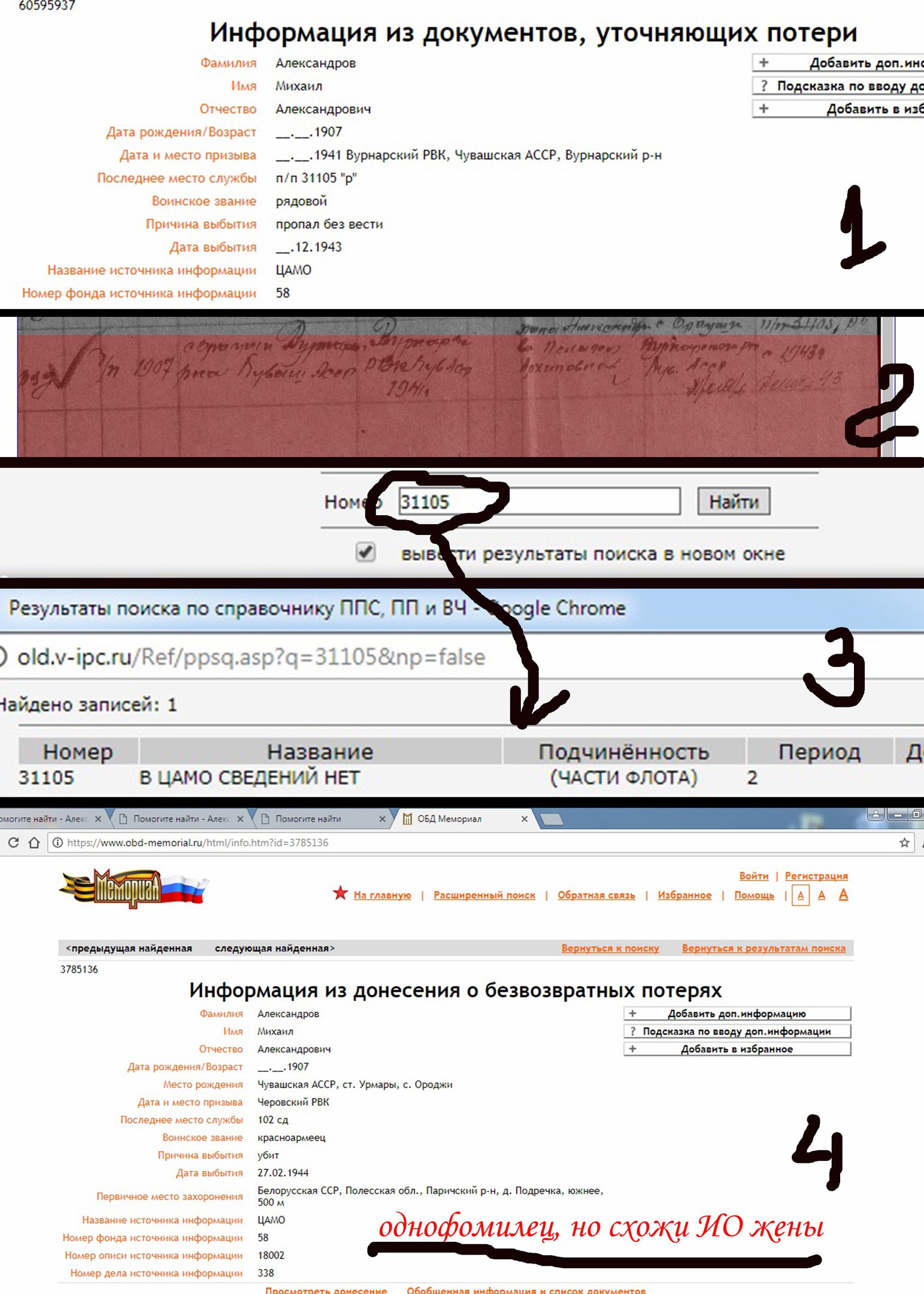 Здесь дают рекомендации по установлению судьбы ПРОПАВШЕГО БЕЗ ВЕСТИ военнослужащего. Запросы другого характера, а также от анонимных авторов не рассматриваются и удаляются из системы. При появлении комментария автоматически приходит уведомление. Чтобы оставить запрос, требуется регистрация в ЛИЧНОМ КАБИНЕТЕ.