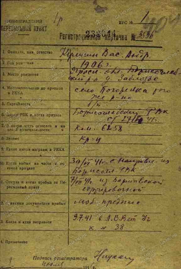 Необходимо узнать о судьбе деда, пропавшего без вести в боях под Великими Луками в августе 1941г, о его последних днях. Мл. лейтенант, 508 с.п. 174 стр. див., 22 А...