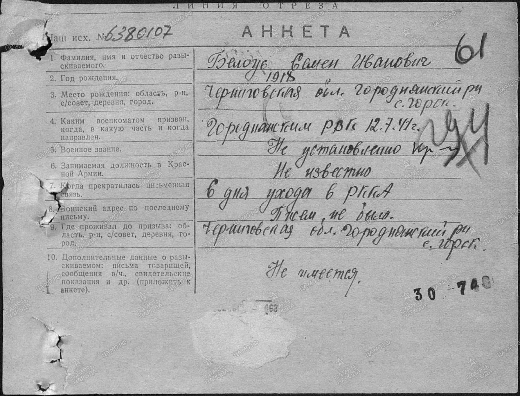 Здравствуйте! Помогите пожалуйста найти, может еще, какие-то данные по моему прадеду.Прабабушка говорила почему то, что он погиб на подводной лодке, якобы их не задолго туда перевели. А так по данным похоронки сообщалось что он пропал без вести 31 августа 1941 г нач.штаба майор Белоусов. По д... |
